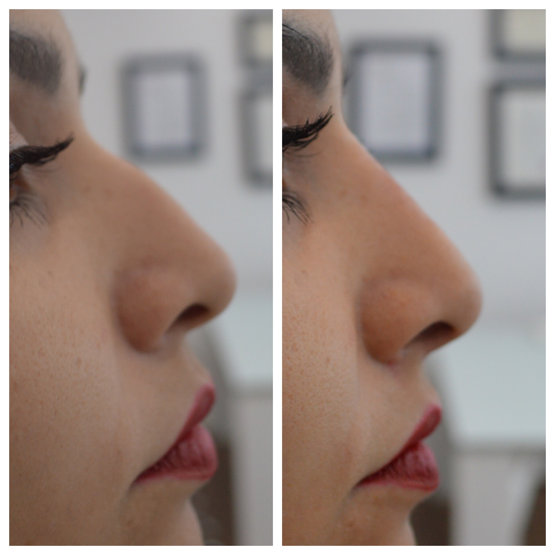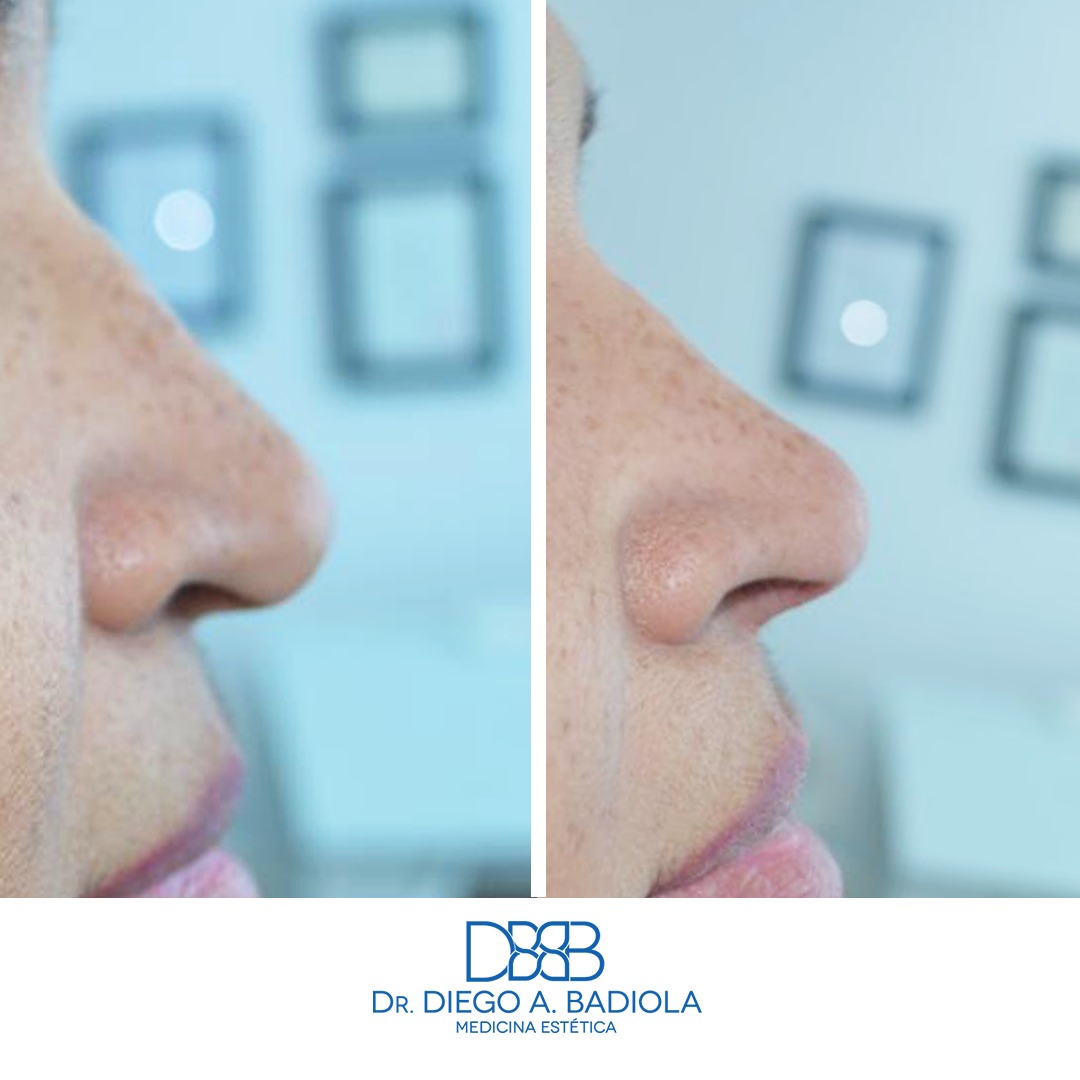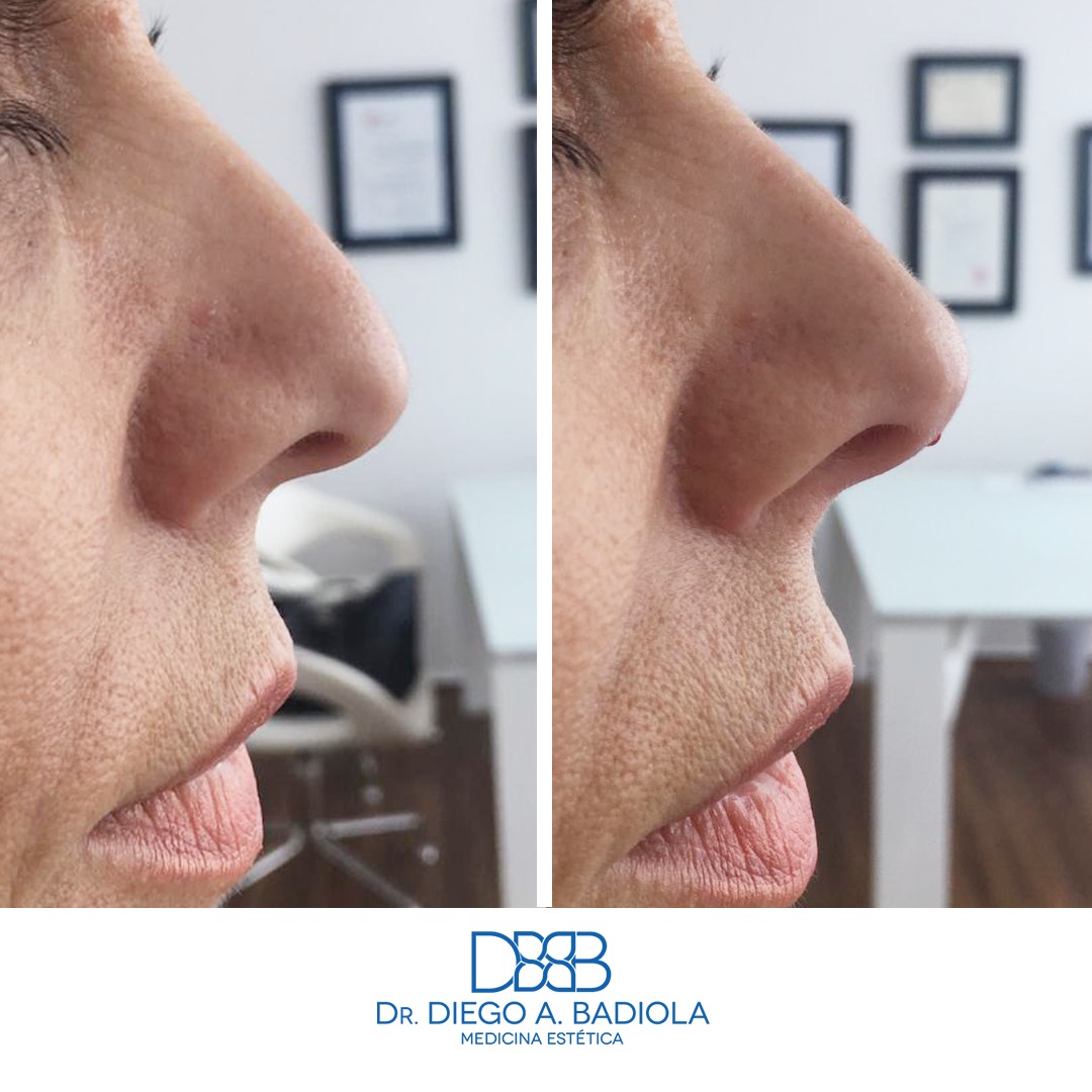 La rinoplastia no quirúrgica es un procedimiento mínimamente invasivo con resultados inmediatos en el que se aplica material de relleno (p. ej. acido hialurónico) en puntos específicos de la nariz con el fin de darle la forma y/o proporciones deseadas o corregir imperfecciones.